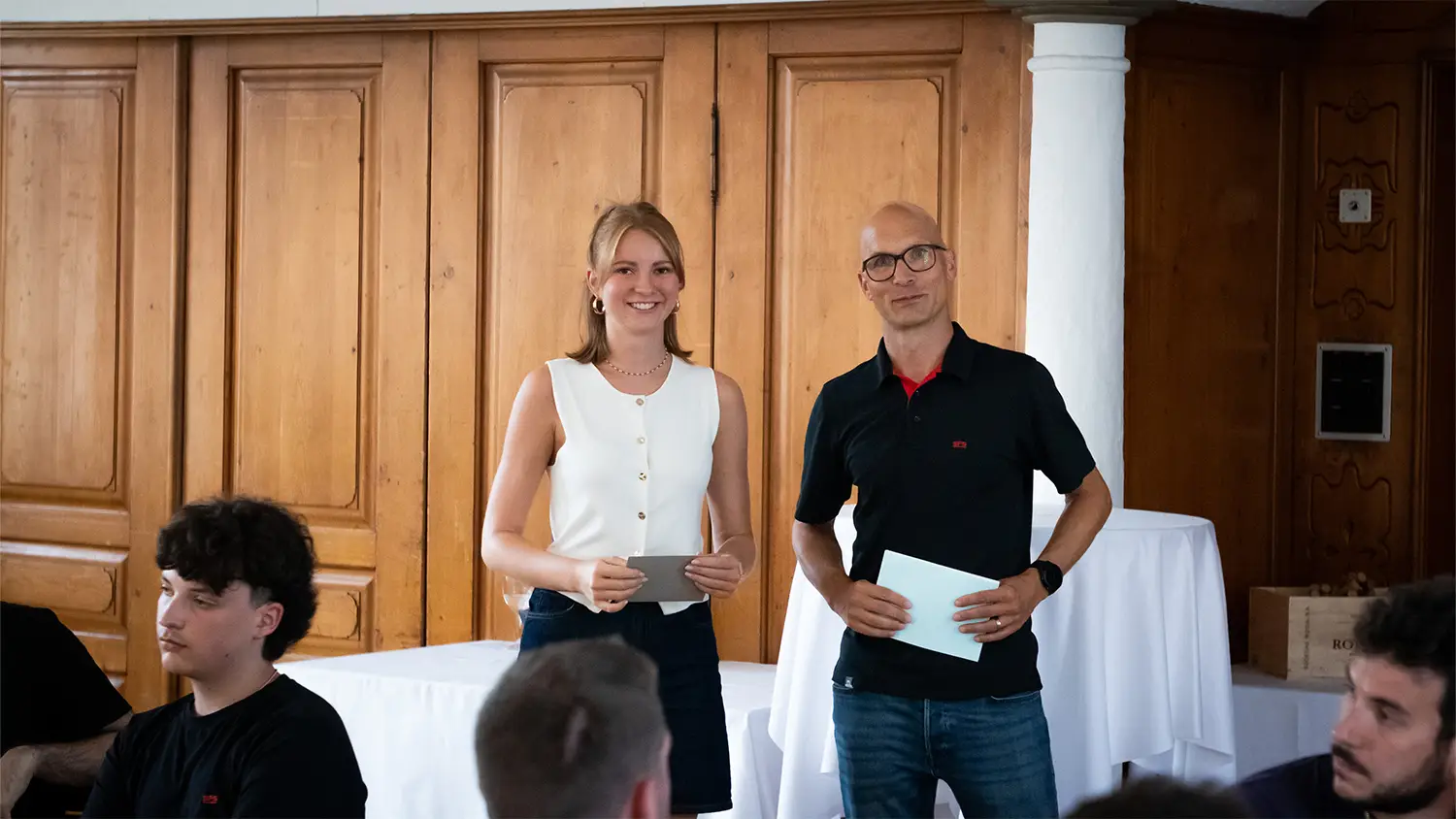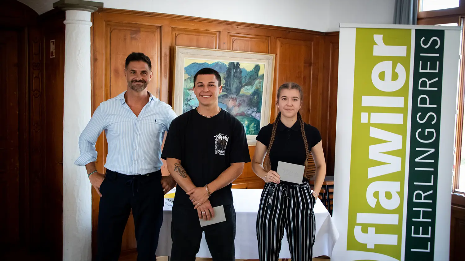 Die Flawiler Arbeitgeberverbände kürten Mitte August im Restaurant Rössli die besten Lehrabgängerinnen und Lehrabgänger. Roland Klotz, Präsident der Handels- und Industrievereinigung Flawil, begrüsste die Anwesenden und führte durch den Anlass. Die Preise in den beiden Kategorien «3-jährige Lehre» und «4-jährige Lehre» wurden von René Niedermann, Vorstandsmitglied der Handels- und Industrievereinigung Flawil, sowie Steven Stüdli, Präsident des Gewerbevereins Flawil, übergeben.
